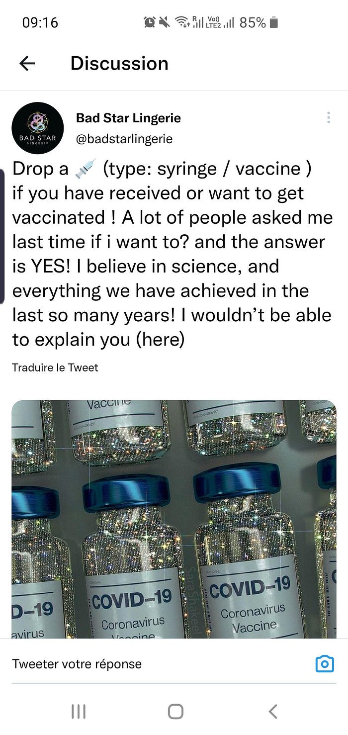 Voyons le dernier point du thread sur la polémique en question : l’officine parle d’un site de lingerie qui y ferait la promotion du vaccin.
