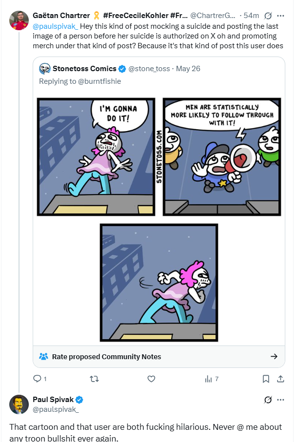 Depuis le rachat par le milliardaire d’extrême droite qui se revendique d’être de centre (insérer rires ici), le réseau social américain prône la liberté d’expression quitte à laisser pulluler la désinformation, bien que Musk a étendu Birdwatch (maintenant nommée Community Notes) cette dernière a eu le droit à une mise à jour trèèèèèèèèèèèèèèèèèèèèèèèèèèèèèèèèèèèèès problématique : la modification de l’algorithme, quitte à aller dans le sens contraire de ce qu’est le but de cette fonctionnalité : le fact checking communautaire. Pourquoi ? Car tout simplement il y aurait en source des médias fiables que Musk considère avec ses partisans de X des médias menteurs. Sauf qu’en tant que plateforme sociale et d’information le réseau social se doit d’être neutre, et dans le monde cela nuit au débat républicain et à la démocratie, en effet pendant les élections présidentielles américaines, la plateforme sociale a servie de relai du trumpisme par Musk lui-même, et cela continue avec en France notamment avec les comptes Comité Trump France (lié à l’agence de communication Progressif Média (dont le groupe Bolloré à des parts de le capital) et Trump Fact News. Le problème étant que ces attaques contre la démocratie orchestrées par ce réseau social sont extrêmement dangereuses, de plus la plateforme sociale laisse des comptes tels que Stonetoss Comics relayer des propos dangereux.